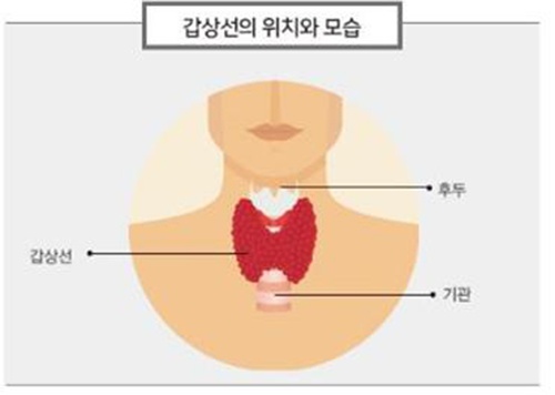 갑상선은 목 전면 목울대 2~3cm에 위치한 나비 모양 기관으로 갑상선에서 분비되는 갑상선 호르몬은 인체 대사 과정을 촉진하여 전신 모든 기관의 기능을 적절하게 유지시키는 역할을 수행합니다.