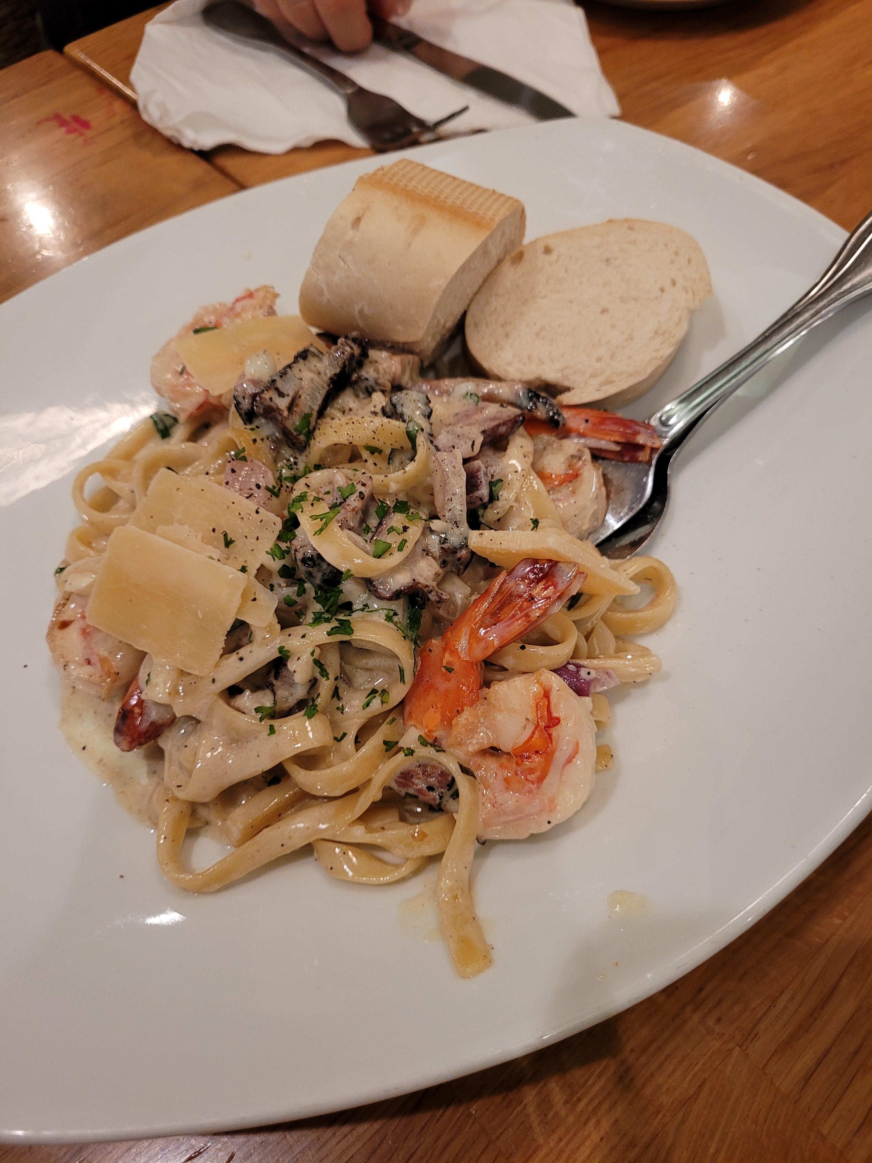 새우와 버섯이 듬뿍 들어간 파스타였어요