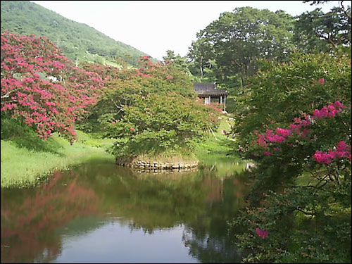 여름 담양에는 진분홍빛 향연이 펼쳐지는데 그중에 압도적인 풍광을 자랑하는 곳이 담양 명옥헌 원림으로 조선 시대 대표 민간정원이었던 곳입니다. 수령 100년이 넘은 배롱나무 20여 그루가 그림처럼 들어앉은 정자와 푸른 소나무, 붉은 꽃이 만발한 배롱나무, 정자 앞 연못이 한폭의 그림과 같습니다.