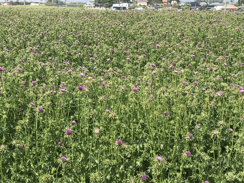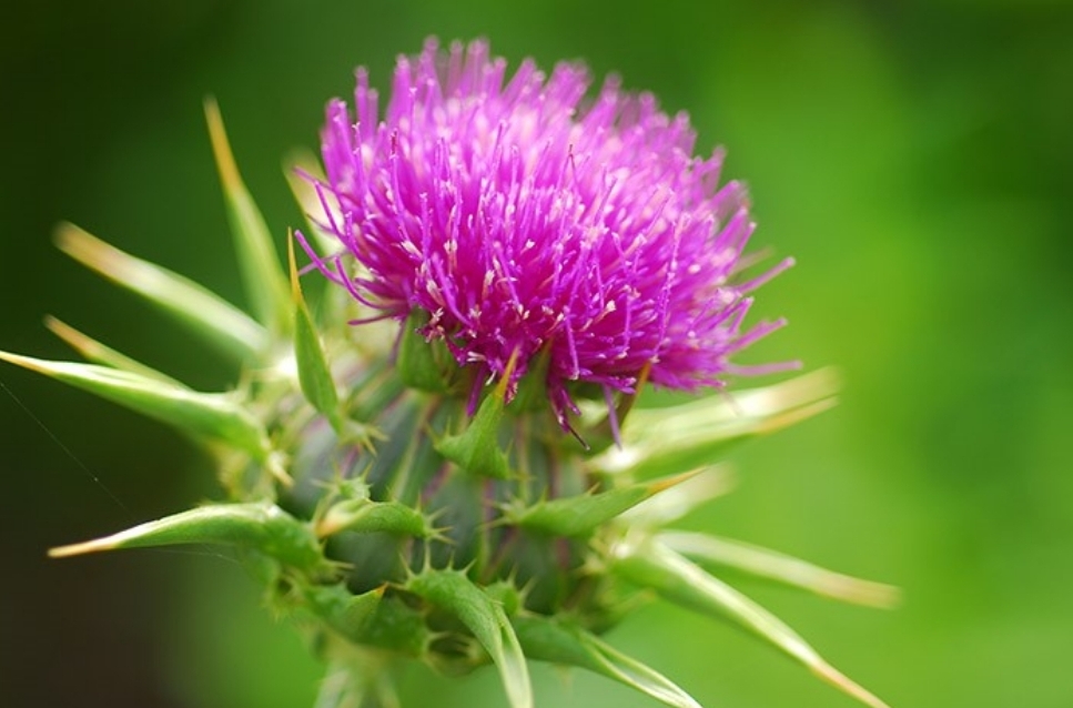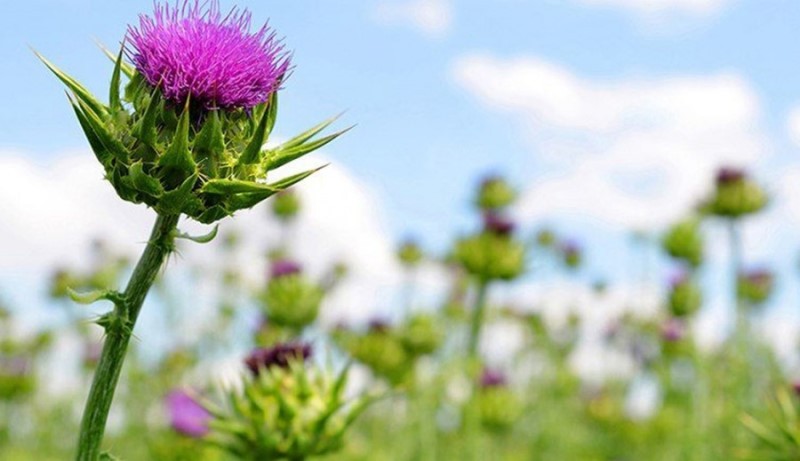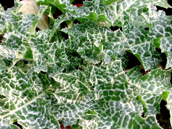 밀크시슬은 국화과 두해살이 식물인 서양 엉겅퀴입니다. 원산지는 지중해 지역이고 우리나라에선 흰 무늬 엉겅퀴라고 불립니다.
