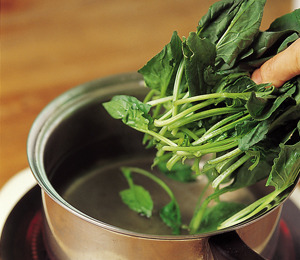시금치는 무르지 않고 줄기 색이 선명한 싱싱한 것을 고릅니다.
