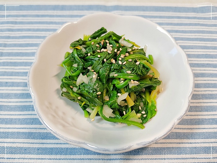 시금치나물은 적당히 알맞게 데치고 간을 하는 것이 제일 중요합니다.