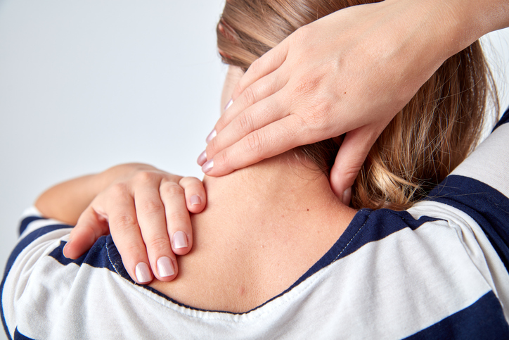 원인은 스트레스와 같은 다양한 외부원인에 의해서 근육이 긴장, 수축하면서 근육 내 혈액순환이 잘 되지 않기 때문에 목, 어깨 등 뻐근함과 통증이 생기게 되는 것입니다.