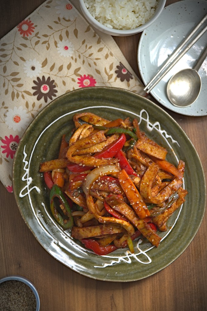 타지않게 재빨리 볶다가 양념이 잘 베어들면 불을 끕니다.