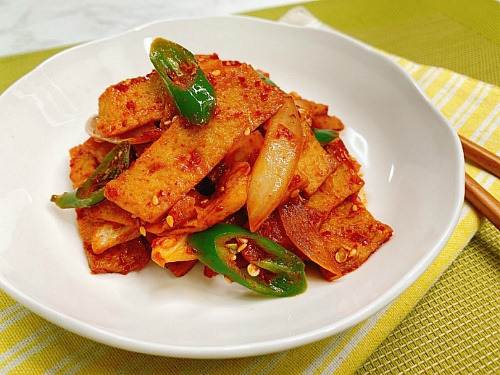 어묵은 생선살을 어깨서 튀겨낸 식품이라 부담스럽다 하시는 분은 끓는 물에 어묵을 살짝 한번 데쳐서 사용해도 좋습니다.