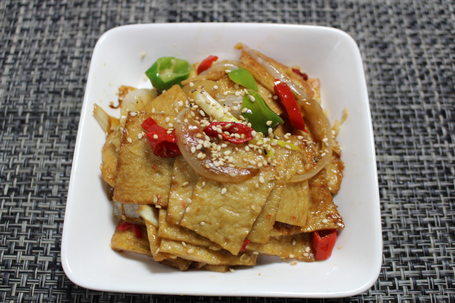 납작어묵 3장, 양파 반개, 고추 2개