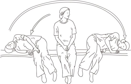 고개를 돌렸으면 어지러운 쪽으로 고개를 돌린 채 천천히 눕습니다. 그리고 30초 대기, 다시 천천히 바로 일어나 앉아 다시 30초를 대기합니다.