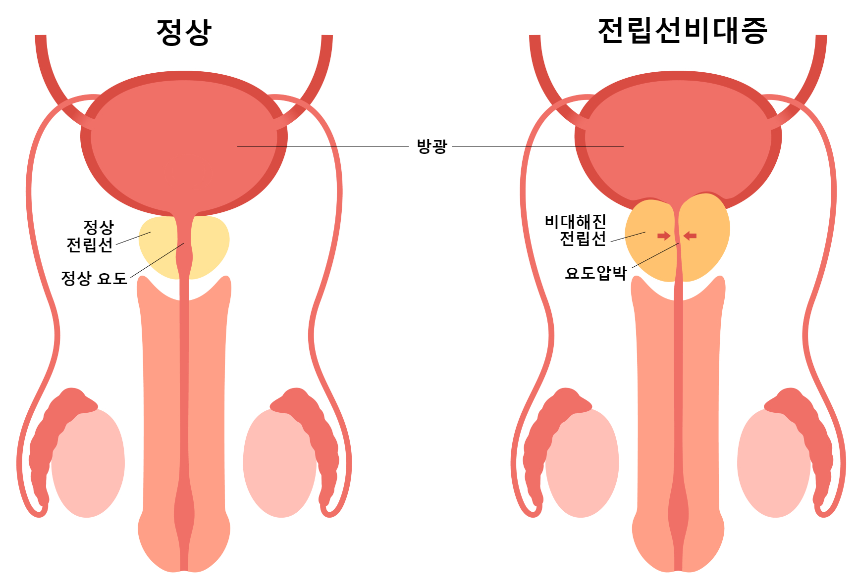 중년 남성들의 고민 중 하나로 전립선비대증이 있습니다. 전립선비대증은 요도부를 감싸고 있는 전립선의 크기가 지나치게 커지는 증상입니다.