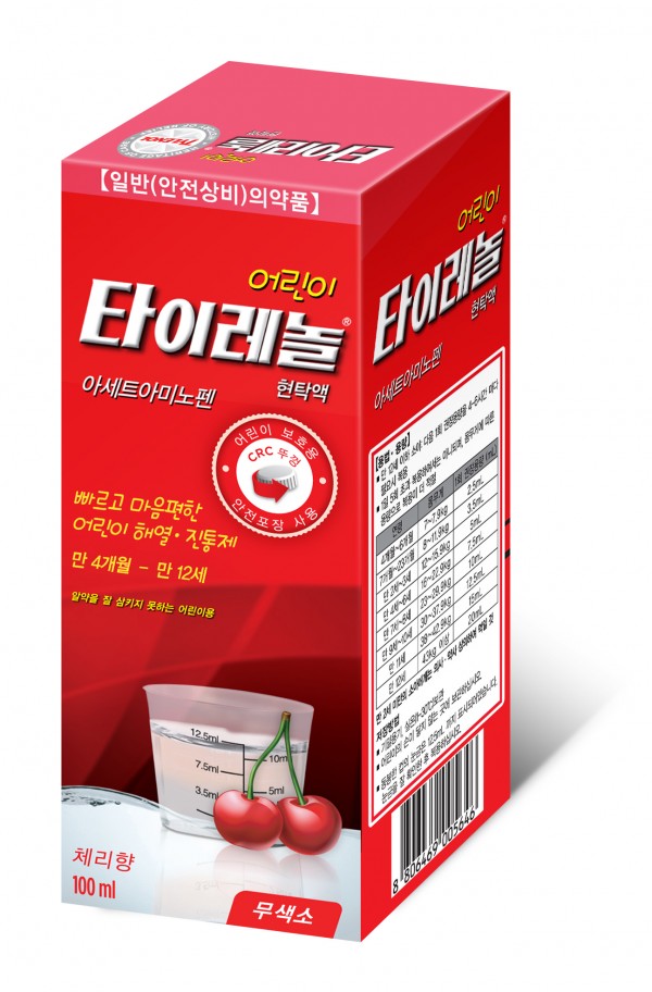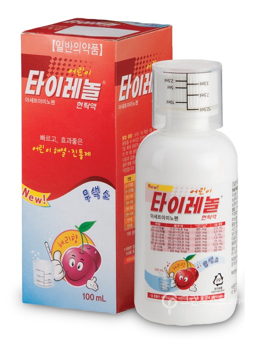 만 4개월 이상인 이가 없는 아기들에게 먹일 수 있는 시럽 형태의 타이레놀입니다. 너무 어려서 알약을 못 먹는 어린이나 알약을 먹기 싫어하는 어린이들이 복용하기 쉽게 체리 맛을 첨가하였습니다. 그래서 어린아이들이 좀 더 쉽게 복용할 수 있도록 만든 타이레놀 시럽 타입입니다.