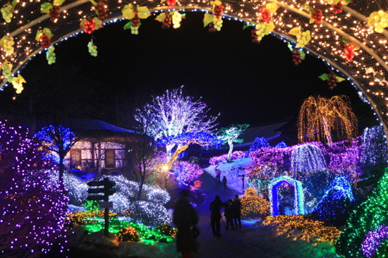 입구에서부터 추운 겨울을 만끽할 수 있었습니다. 또 밤에는 다채로운 불빛이 들어와 야간에도 여행하기 좋습니다.