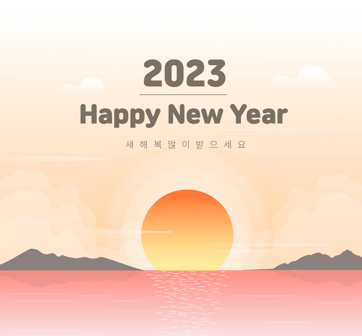 설렘과 기대가 가득한 2023년 새해가 시작 되었습니다. 새해에는 본인이 하고자 하는 일, 꼭 성취하시고 행복한 결말이 있길 기원하며 건강하고 웃는 일만 가득한 새해 되세요.