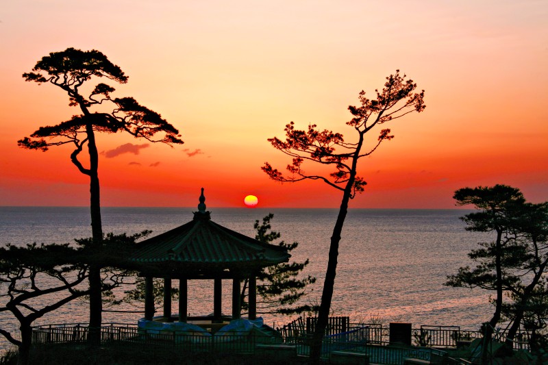 양양과 속초 경계 쯤에 위치한 천년 고찰 낙산사 의상대 너머로 올라오는 해는 국내 3대 기도 도량의 일출이라 더 감동적으로 보일 거 같습니다.  해수관음상 쪽으로 올라가시면 바다와 일출이 훨씬  더 잘 보입니다.