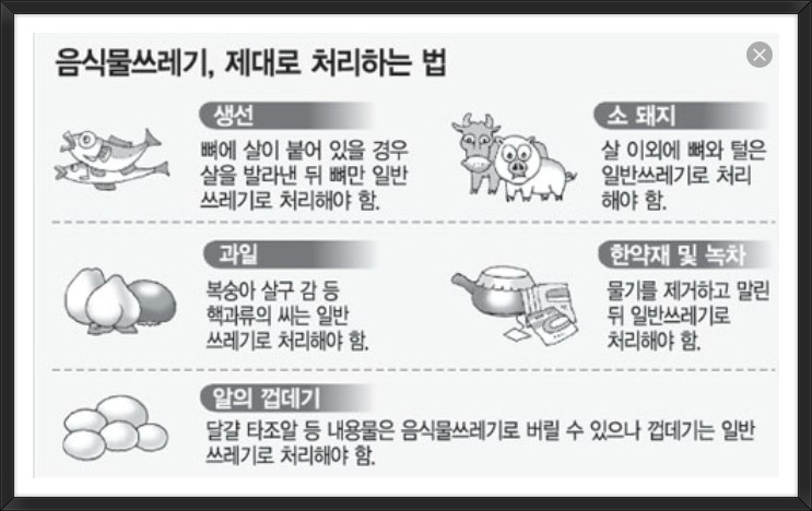 위에서 그려진 대로 음식물쓰레기 제대로 처리하는 법을 잘 알아둬야겠습니다.