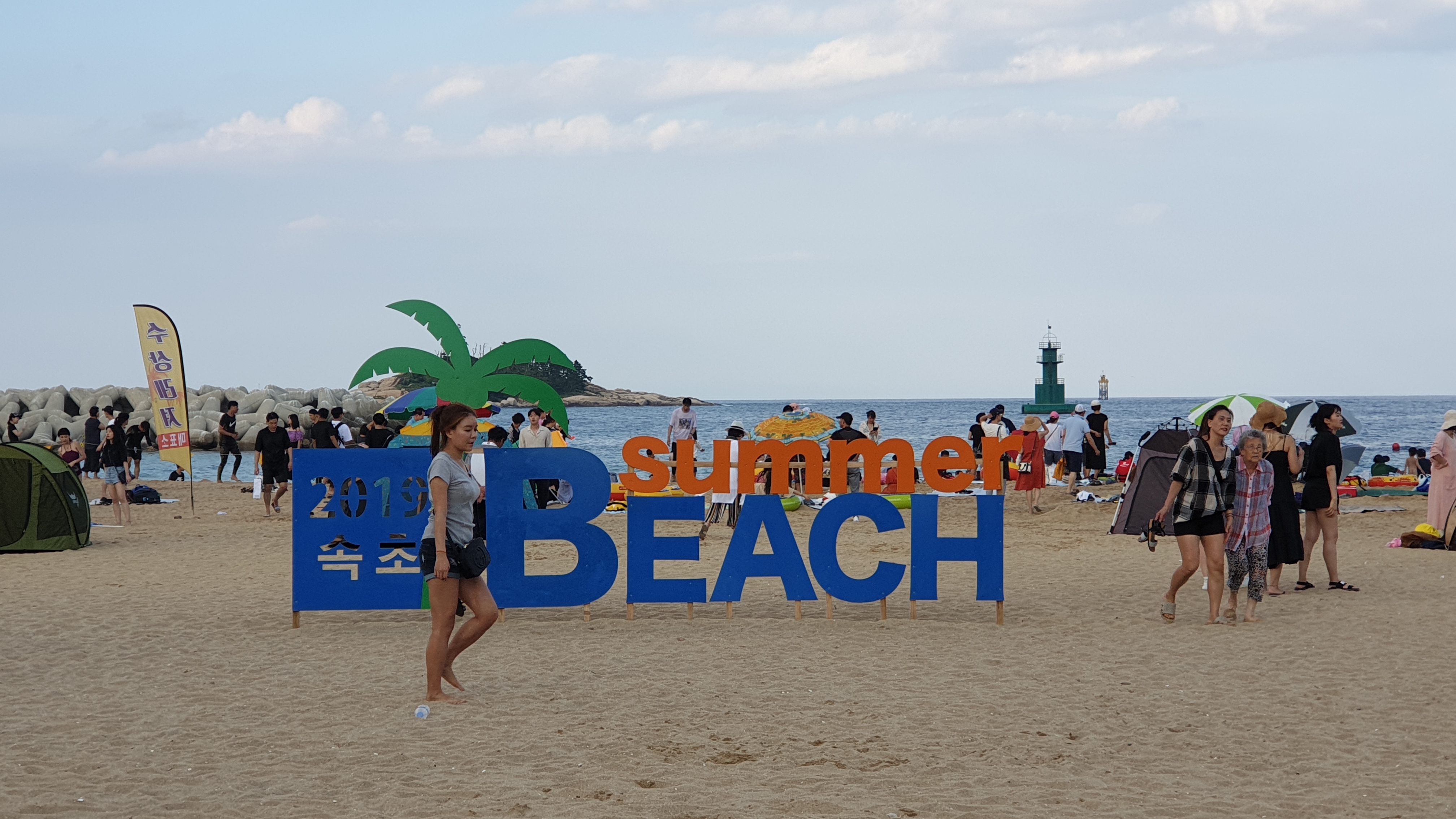 1976년 개장한 속초해수욕장은 국내 전형적인 해수욕장중 하나로 평가받고 있으며 바닷물이 맑고 깨끗합니다. 수심이 얕고 경사가 완만해 여름철 휴가철에는 어마어마한 인파로 가득 차는 해수욕장입니다. 모래사장 곳곳에 설치된 조형물들이 관광객들의 포토존으로 각광받고 있고 이 중 푸른 바다를 배경으로 한 액자 프레임과 하늘을 향해 뻗은 천국의 계단은 관광객들에게 가장 인기 있는 포토존입니다. 또한 속초아이 관람차도 있어 바다 풍광을 한눈에 내려다보며 감상할 수 있습니다.