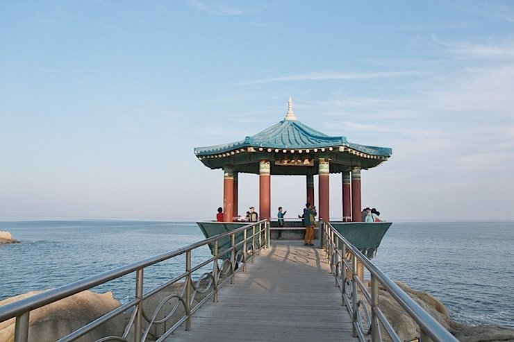 영금정은 속초시 동명동 속초등대 아래 해변에 크고 넓은 바위가 놓여 있는 곳입니다. 물결이 바위에 부딪치면 신비로운 율곡이 들려 영금정이라는 지명의 유래가 있습니다. 이 소리는 마치 영적인 "거문고"의 소리와 같다고 합니다. 도심과 가까운 곳에 위치해 있고, 경치가 뛰어나 속초 시민들이 일 년 내내 여름휴가와 낚시를 즐기는 곳입니다. 현재, 속초시는 영금정 지역을 관광지로 개발했고 남쪽 방파제 근처에 진짜 정자가 지어졌습니다. 이 누각은 영금정 바위에 세워진 해양 누각으로 약 50m의 다리를 건너 들어갈 수 있습니다. 바다 정자에서 바다를 바라보는 느낌은 방파제와는 다른 시원한 느낌을 주지만 정자 자체가 매우 촌스러운 콘크리트 정자라는 점은 아쉽습니다. 그것은 보통 해돋이 누각이라고 불리는데, 누각의 현판에는 영금정이라는 글이 있습니다.