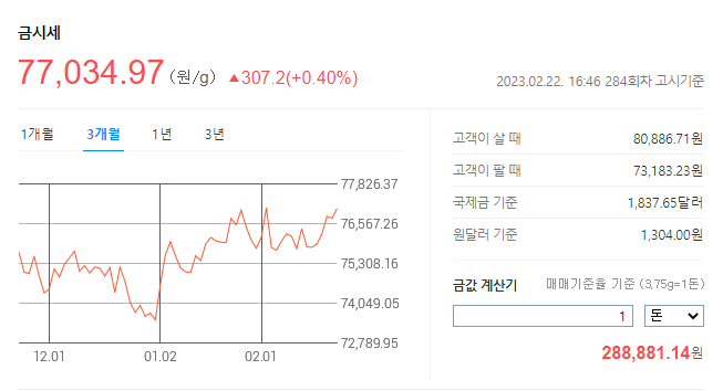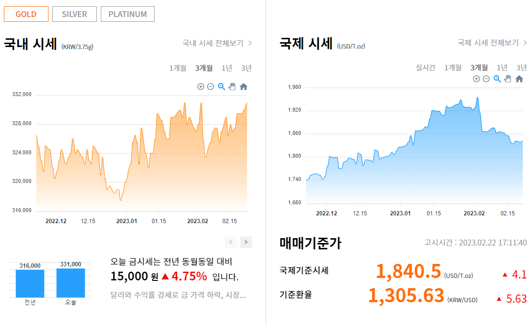 2023.02.22 17:16 고시기준 현 금시세를 살펴보면