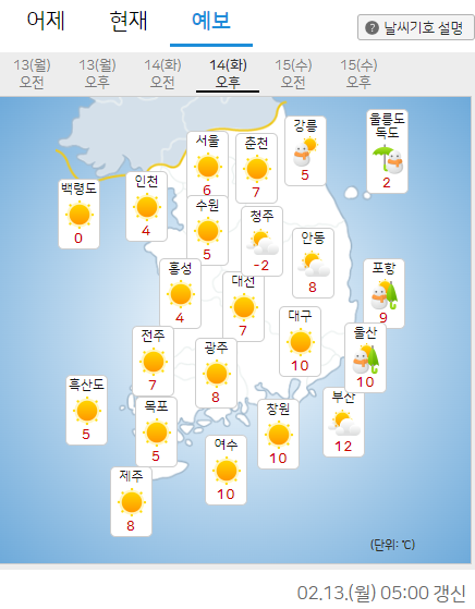 ※ 02월 13일부터 02월 15일까지의 전망입니다.