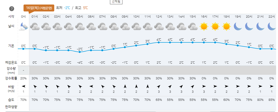 ○ (강수) 16일(목) 오전에 비 또는 눈이 오겠습니다.