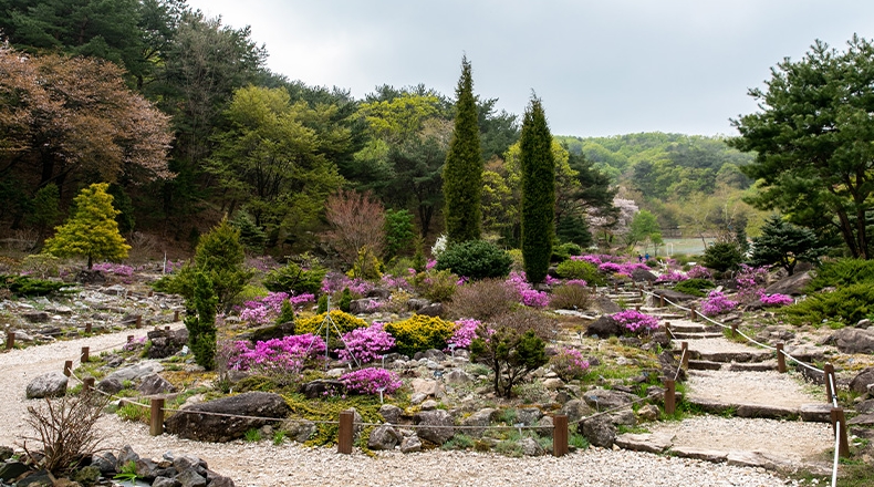 평강식물원은 자생식물 및 멸종위기 식물을 보존하고 연구하는 자연친화적 정원입니다.