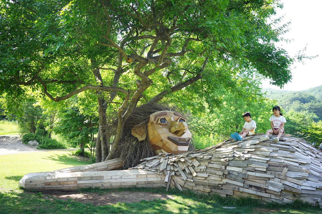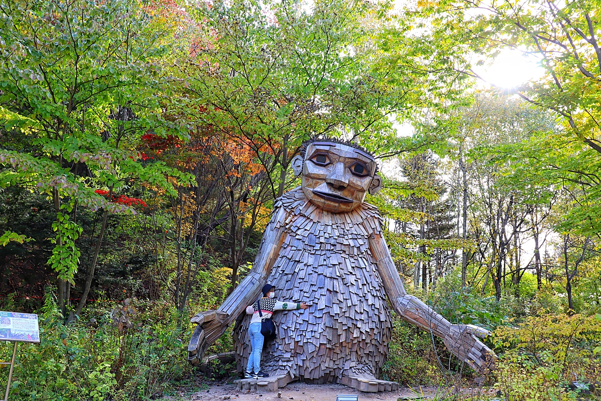 모노레일을 타고 올라가는 길에 잔디밭으로 되어 있는 조각공원도 있습니다.