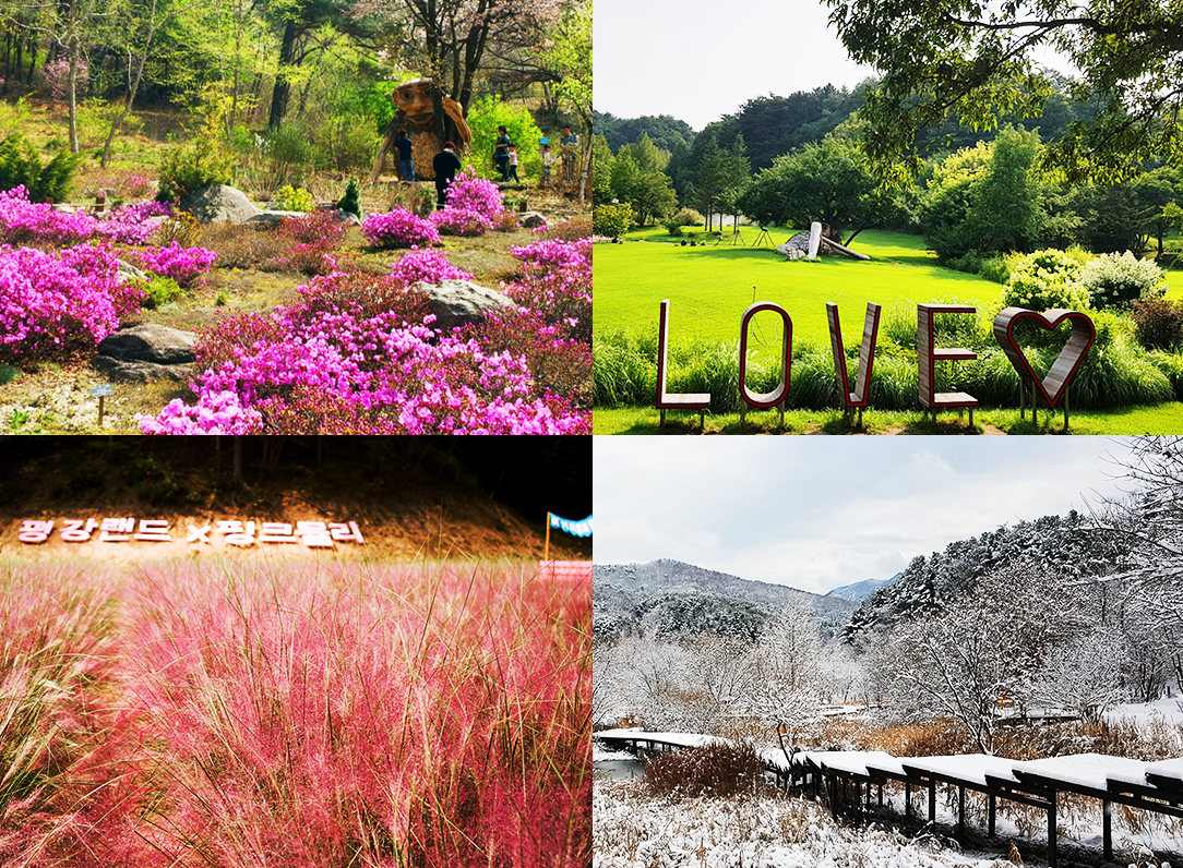 평강랜드는 약 20만 평에 달하는 부지에 10여 개의 테마를 가진 정원이 가꾸어지고 있으며 어린이들이 놀기 좋은 어드밴처 파크, 숙박이 가능한 이노수피아 리조트, 전시도 할 수 있고 교육도 가능한 평강 뮤지엄이 한 곳에 모아 놓은 복합 엔터테인먼트 시설입니다.