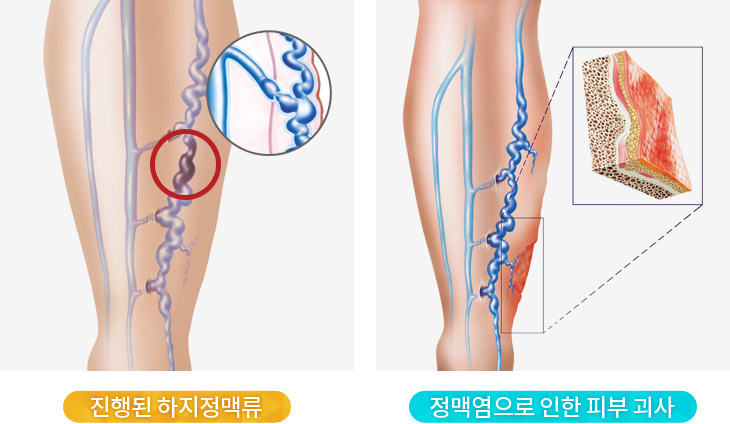 보통 다리안 쪽의 정맥에 일어나기 보다 피부 쪽에 위치하고 있는 표재 정맥에 자리하고 있어 판막에 이상이 생겨 혈액이 잘 순환하지 못해 피가 역류하면서 정맥이 받는 압력이 올라가서 정맥 혈관에 이상을 발생하게 하는 혈관이 울퉁불퉁한 현상이 나타나고 다리가 붓는 증상과 종아리 통증과 다리 저림 등을 발생하는 것이 하지정맥류입니다.